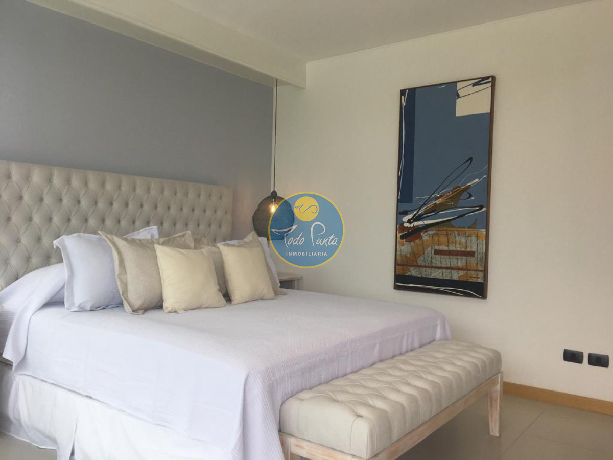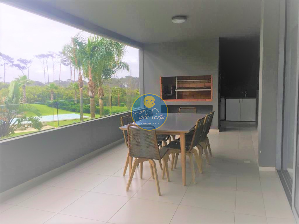 Amplios ambientes, living comedor de alto nivel, toilette, gran máster suite, más 2 excelentes dormitorios también en suite. Cocina definida con comedor diario integrado, servicio completo, terraza con churrasquero propio, amueblamiento de primer nivel, 2 amplios garajes individuales y gran box baulera. 213 m2 propios, más 282 m2 de jardín de uso exclusivo. Cuadros de autor. Amenitis de primer nivel, piscina inout, gimnasio, sala de lectura, servicio de mucamas, etc.
