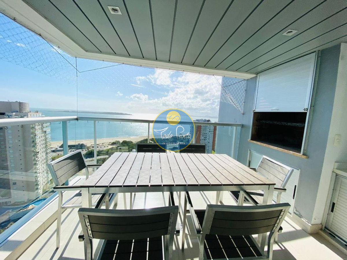 Apartamento en torre de categoría, 2 dormitorios , terraza con parrillero. Piso alto con excelente vista a la bahía y puesta del sol.
