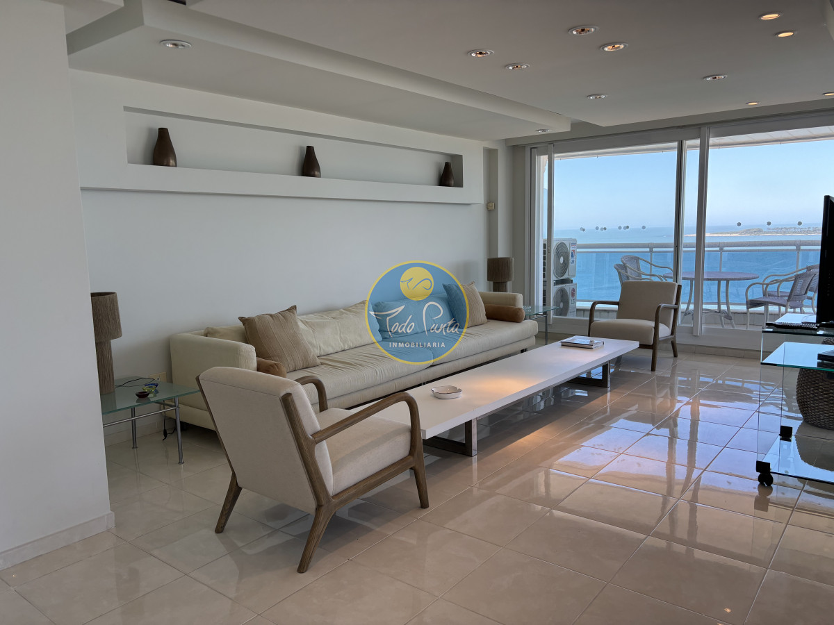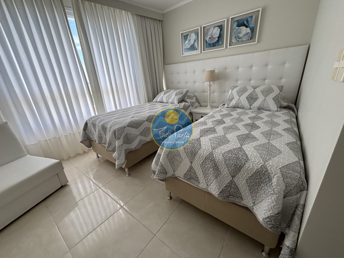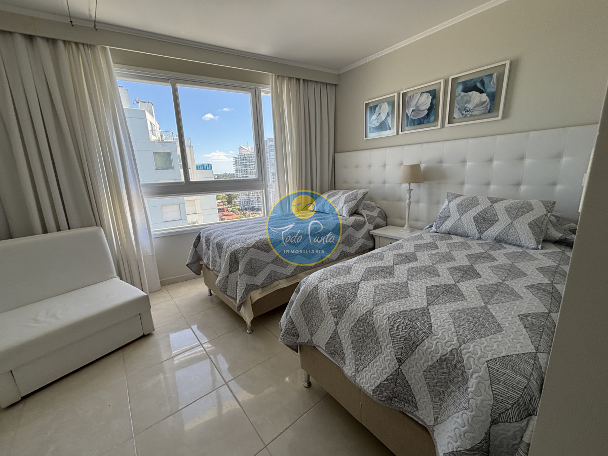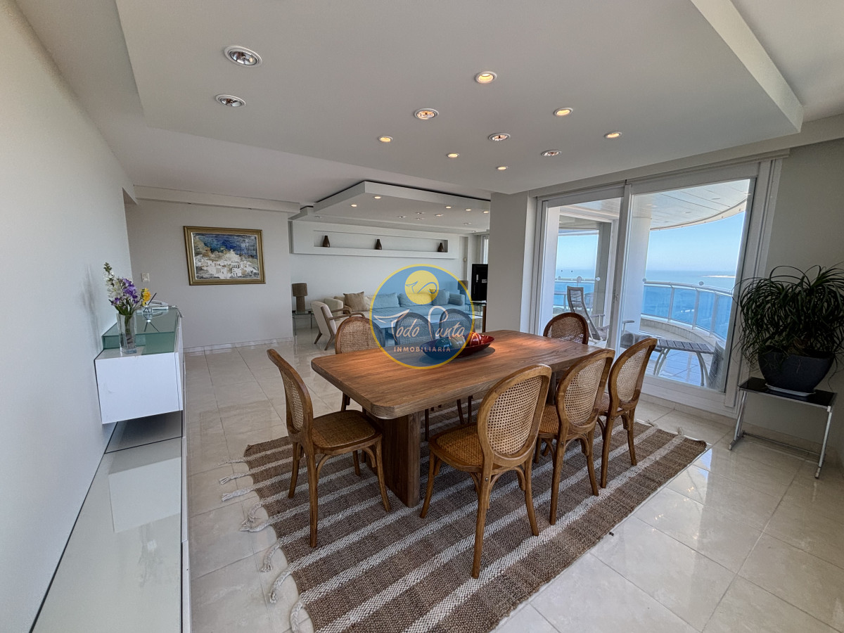 Piso alto, living comedor, gran balcón terraza, toilette, tres suites y dependencias de servicio. Garage doble. Mucama diaria, wifi, cable.
