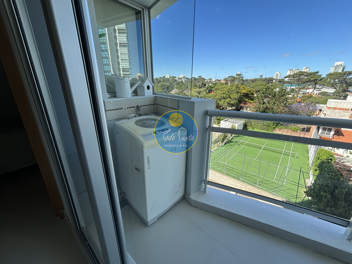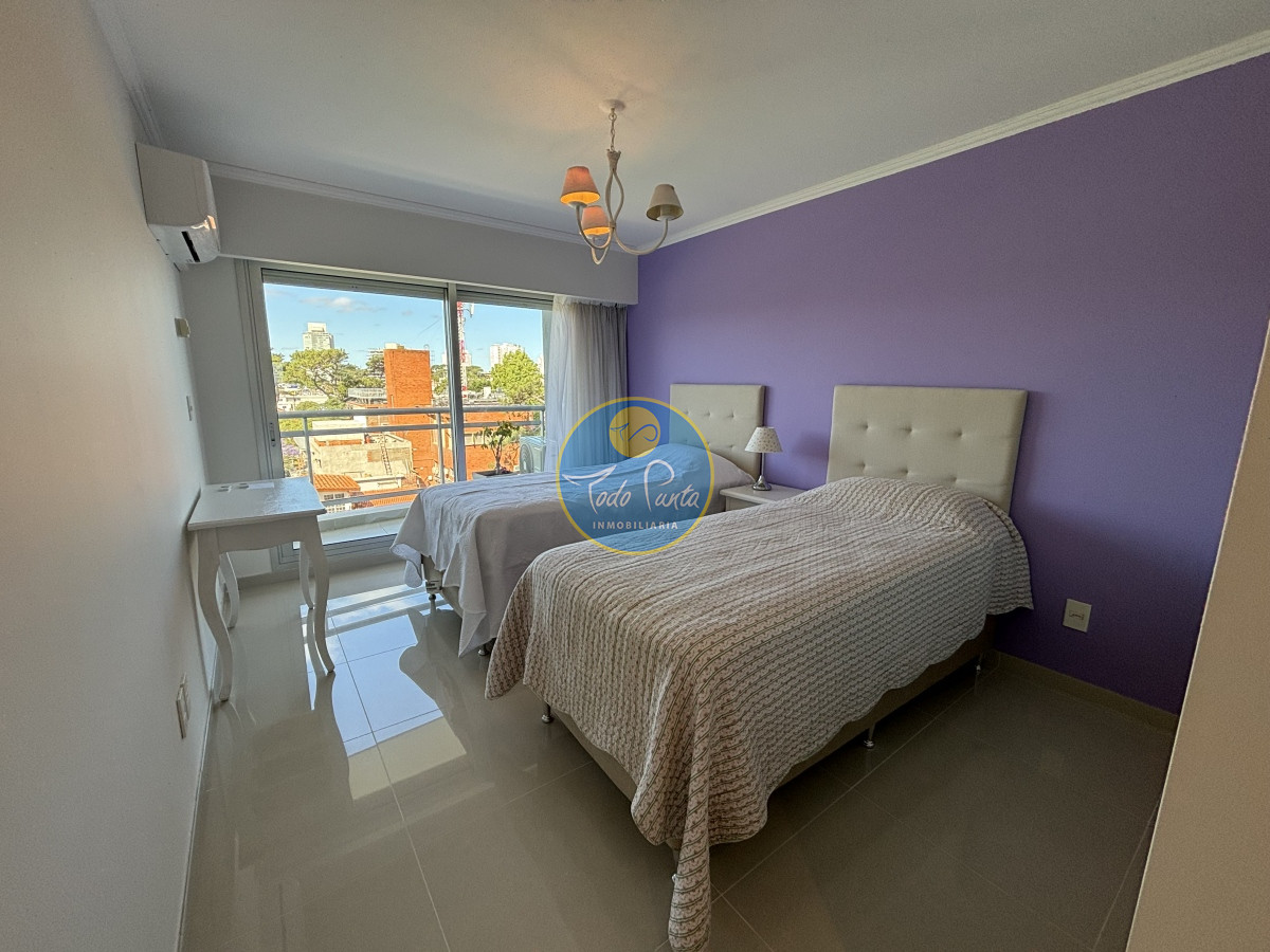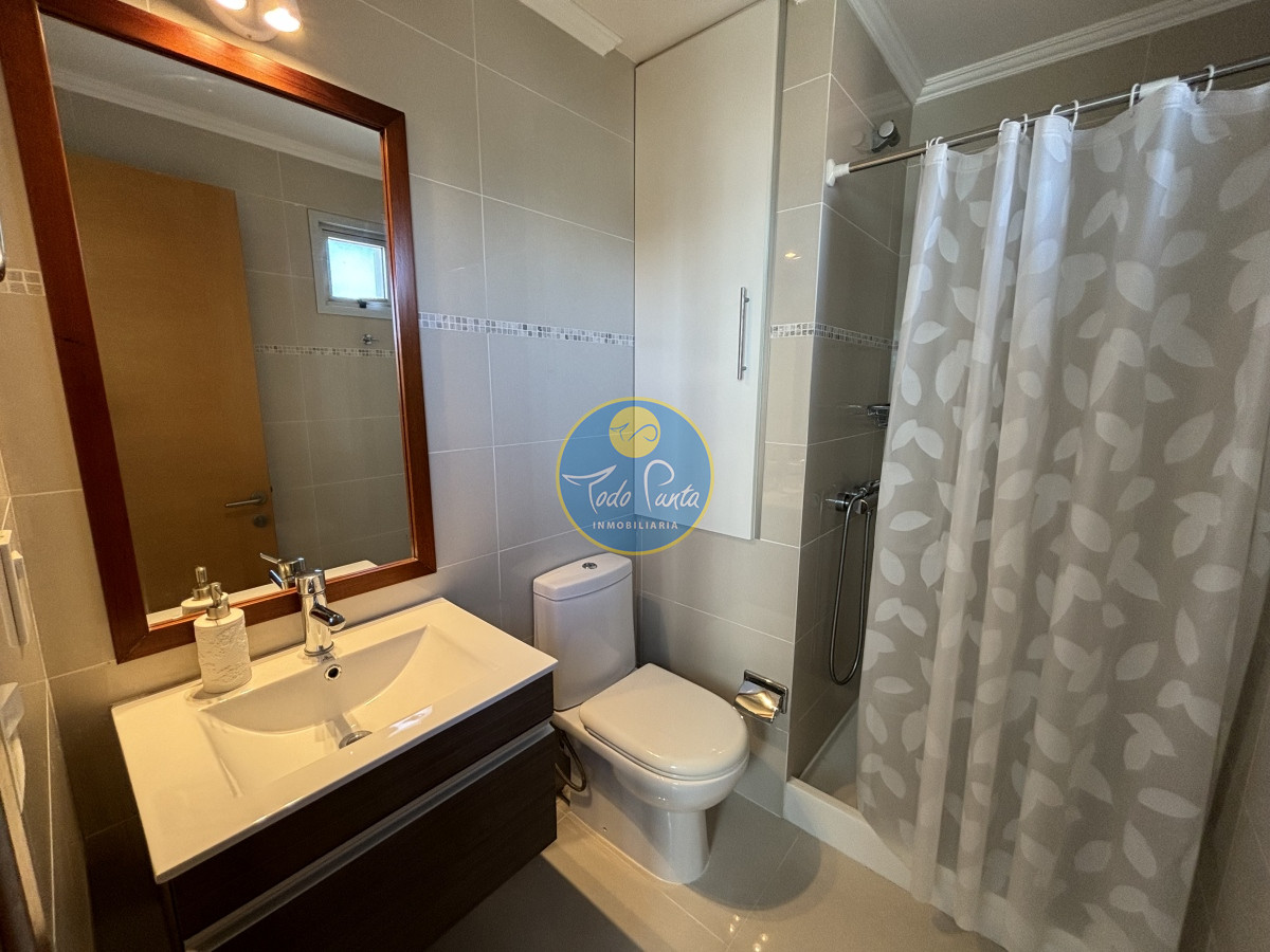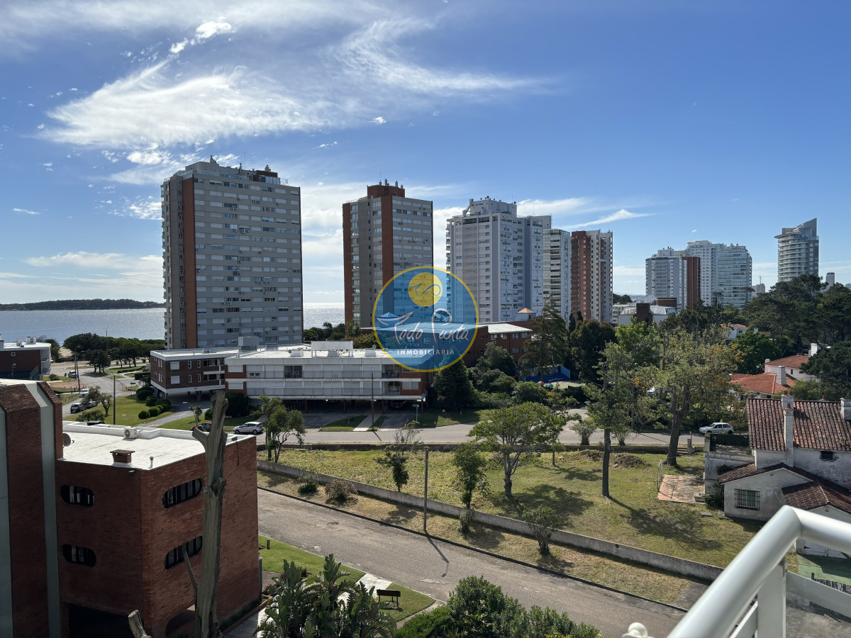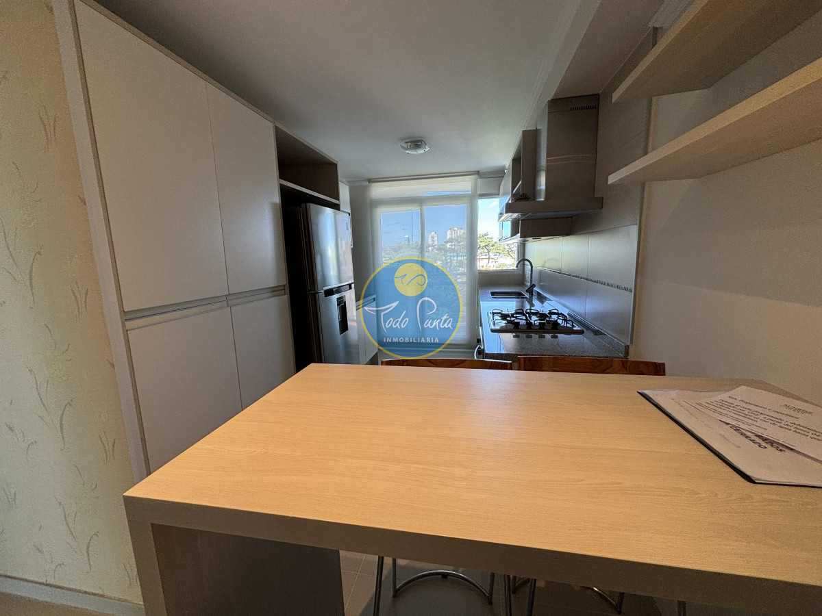Edificio Sunrise Tower. Unidad central. Living comedor a gran balcon terraza y suite principal con vista al mar. Toilette de recepcion, cocina con desayunador, segunda suite mas dependencia de servicio con baño completo. Grandes detalles en los techos, molduras, muebles extras en los baños, empapelados y paredes con piedra. Garage en el primer subsuelo