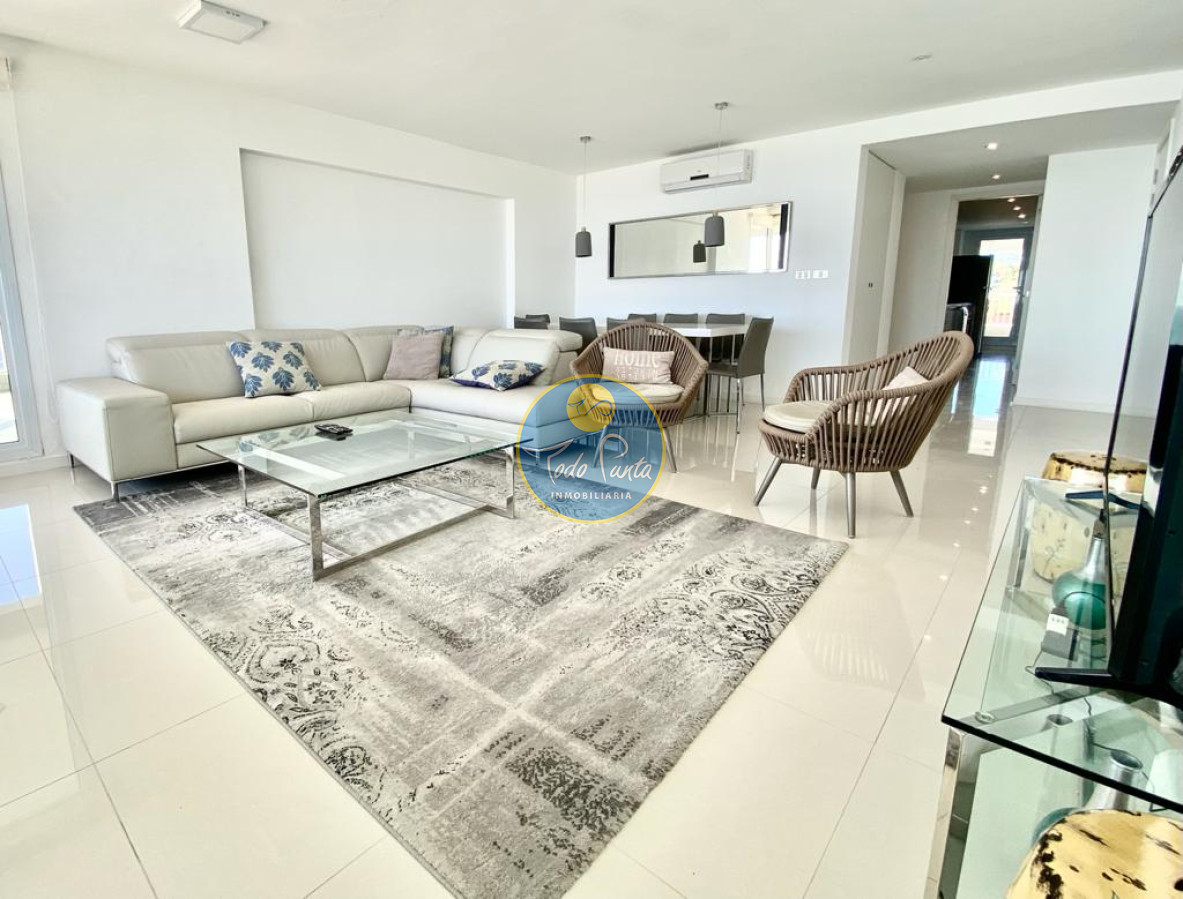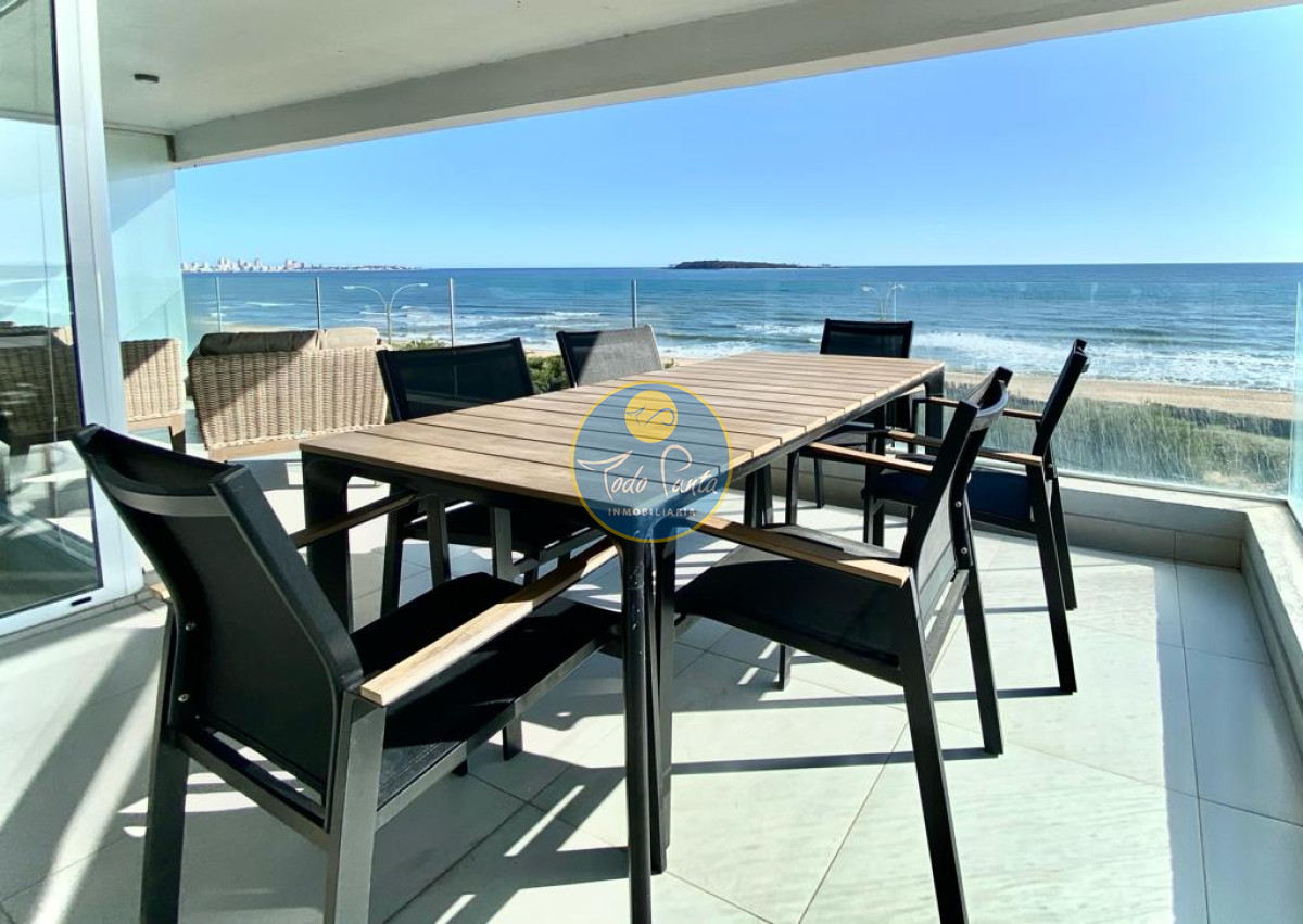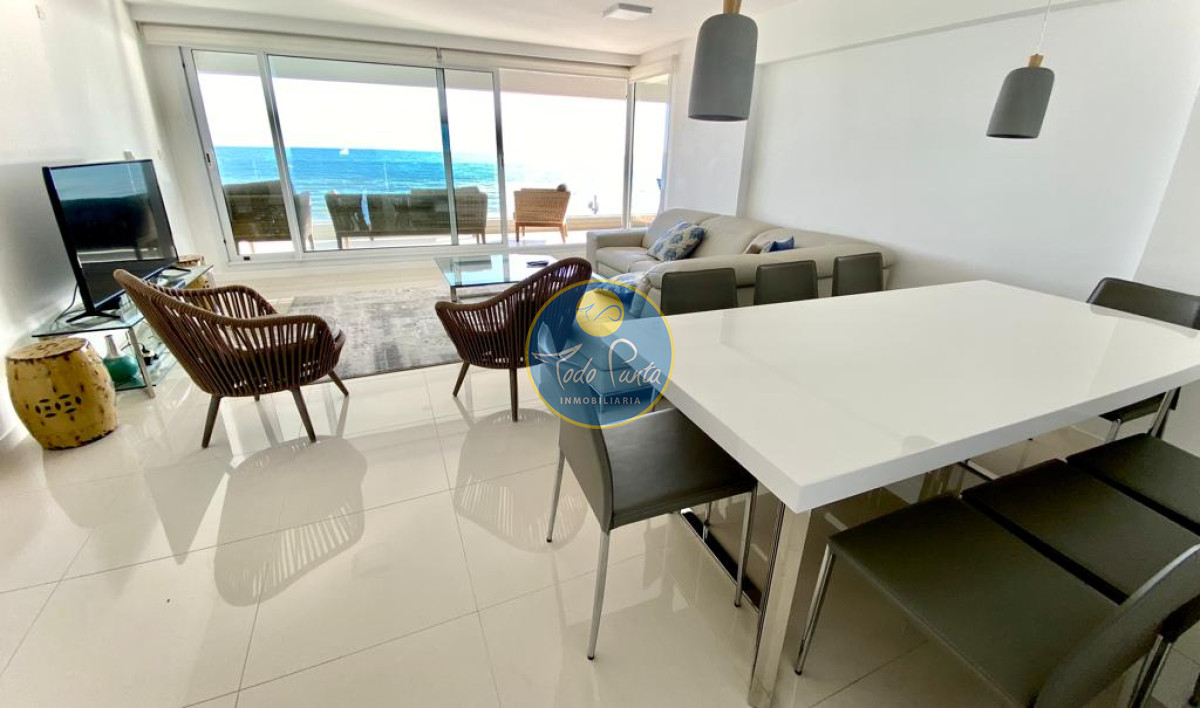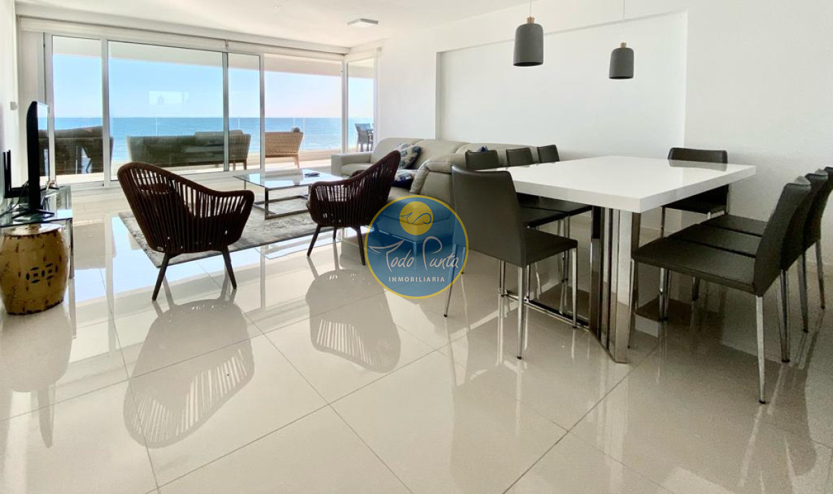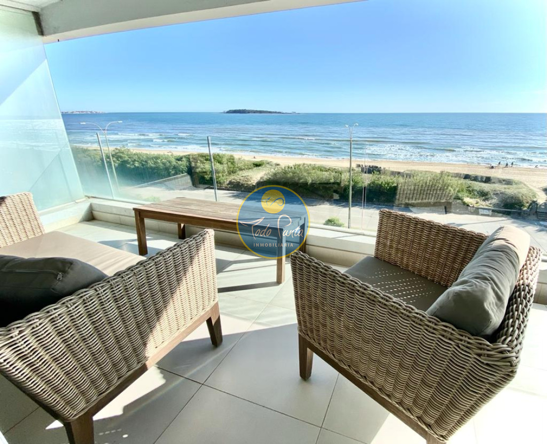 Venta de Apartamento en PLAYA MANSA. Exclusivo Penth House en primera fila de playa mansa con casi 280 m2 totales en 2 pisos, planta baja con 3 dormitorios en suite mas dependencia de servicio, toilette, amplio living comedor, balcón con 180 grados de vista al mar desde punta ballena hasta la península, 2do piso con sector de barbacoa con baño y enorme terraza con vistas e hidromasajes. Edificio diseñado por el reconocido arq. Mario Roberto Álvarez. Consulte venta y alquileres. Por mas información contáctenos.