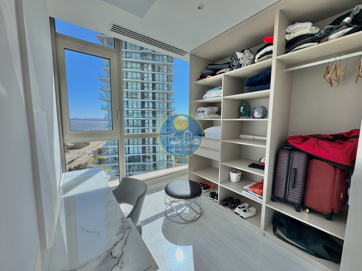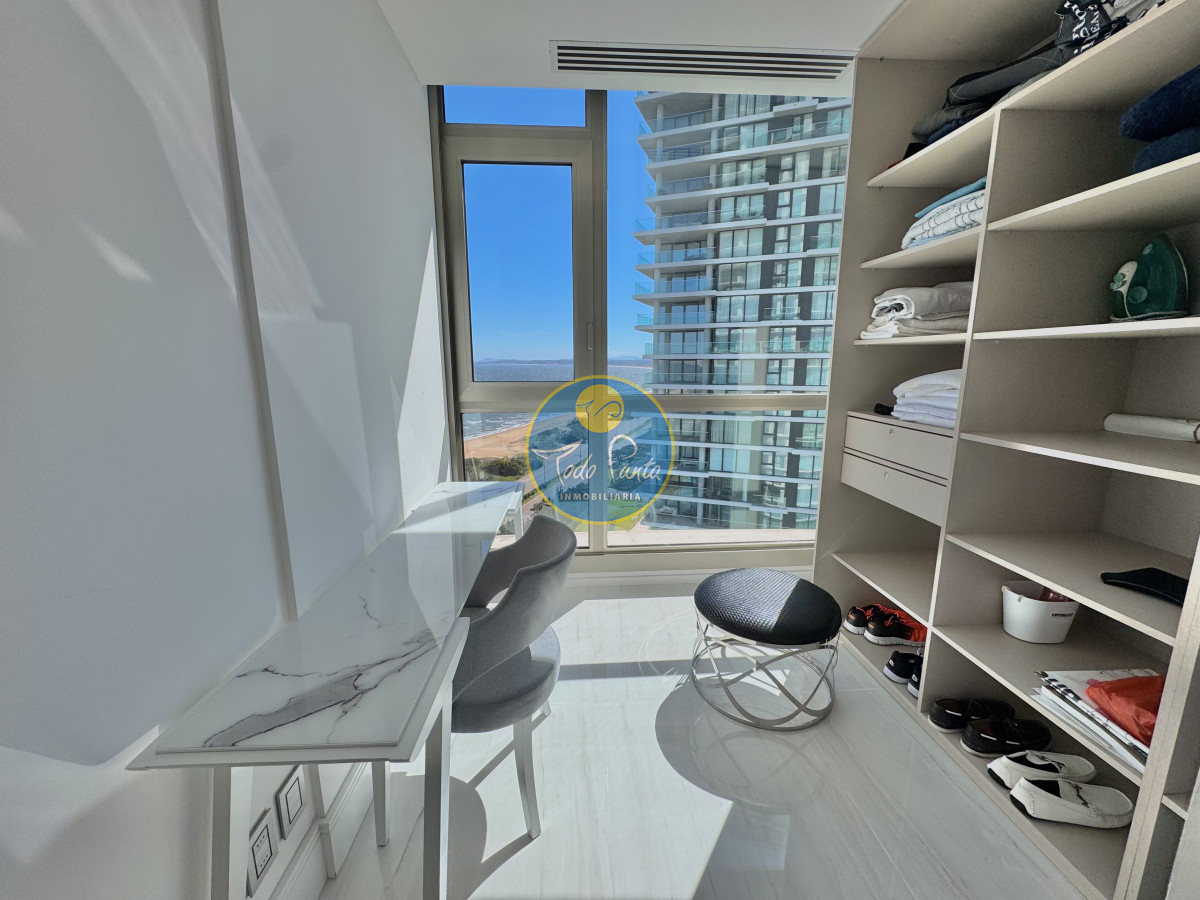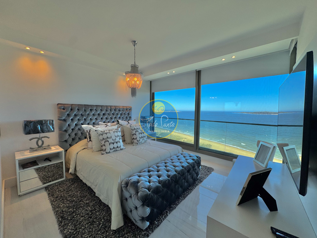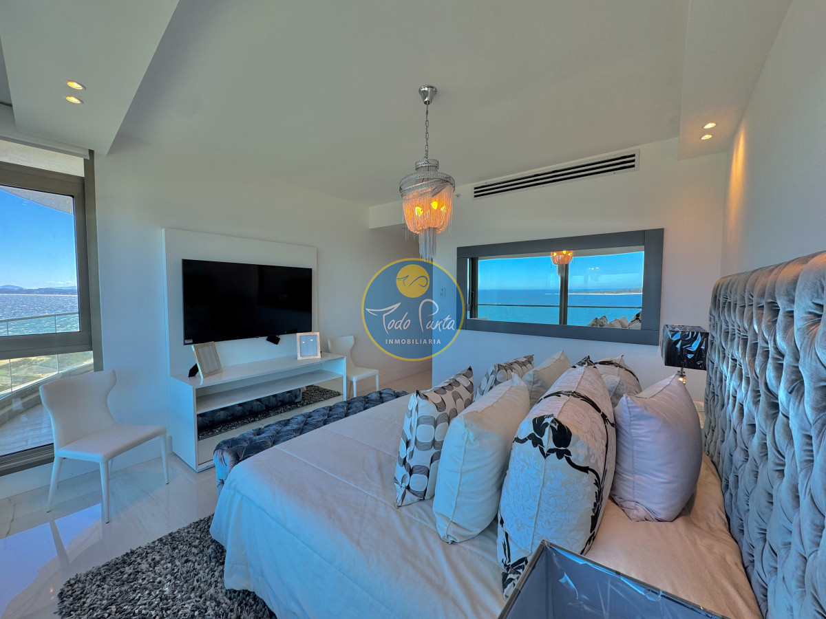 La master suite juega un papel importante, orientada al frente del edificio, con vistas espectaculares 180 grados desde Punta del Este a Punta Ballena.