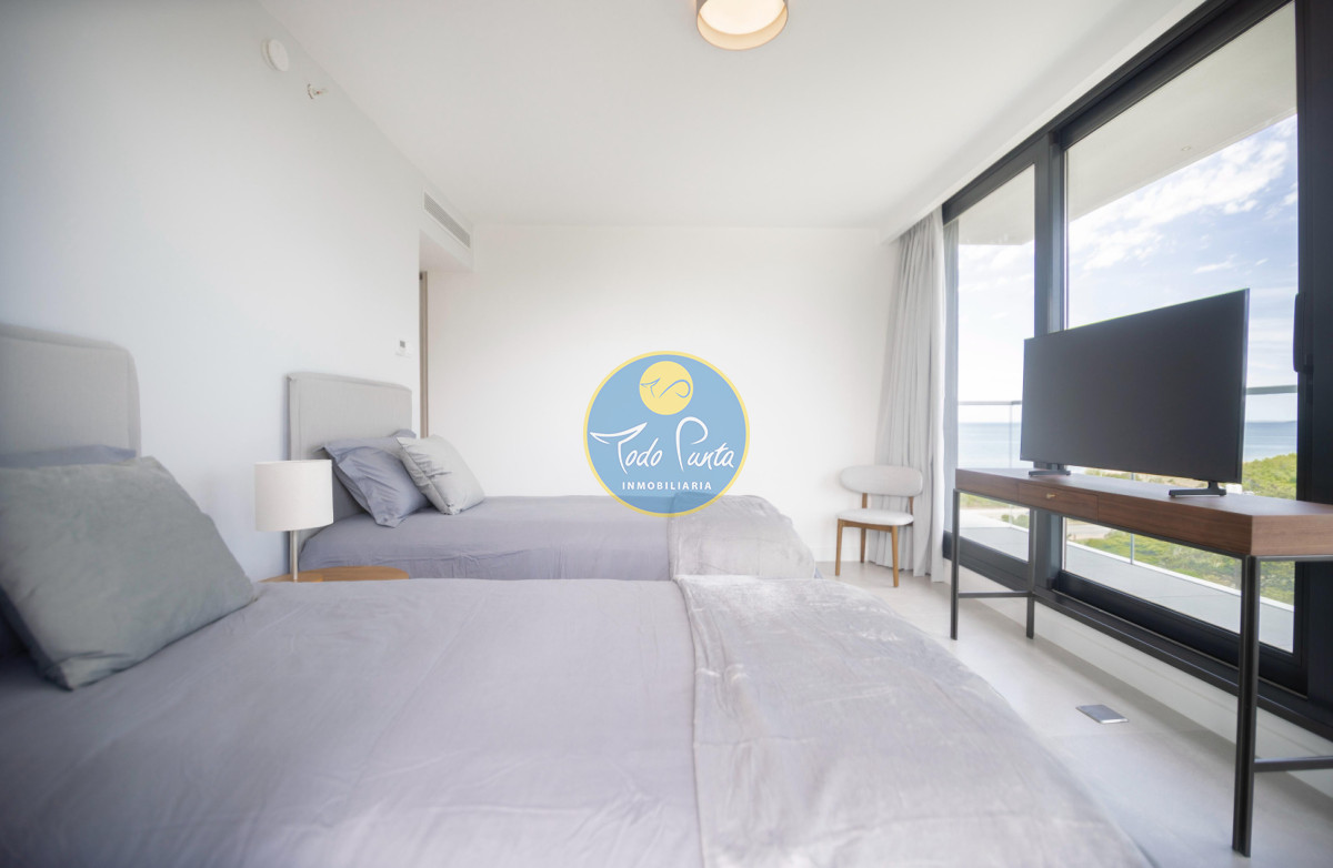 Conoce este exclusivo apartamento ubicado frente al mar en playa mansa, donde se fusionan la elegancia y comodidad en un solo lugar. Con una privilegiada orientación NorOeste, esta unidad de 3 dormitorios y 3 baños, todos en suite, te ofrece el espacio y la privacidad que mereces.