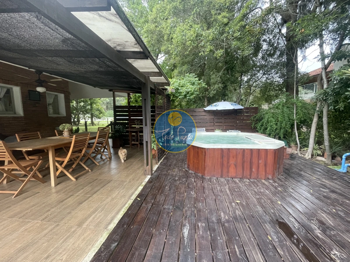 Magnifica casa en Punta Ballena, a metros de la Ruta Interbalnearia. Sólida construcción, 1.300 metros de terreno y 500 construídos. 7 dormitorios distribuídos en 2 plantas. 2 master suite con estufa a leña. Jacuzzi exterior, parrillero y garage.
