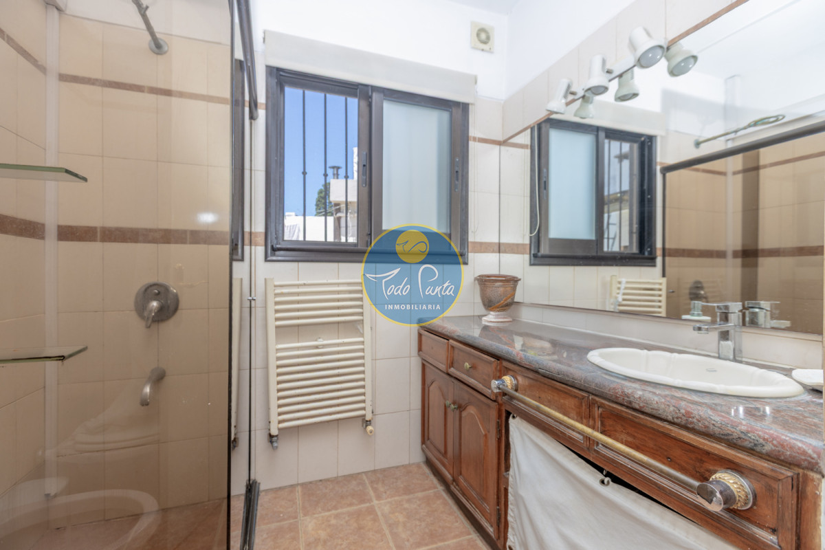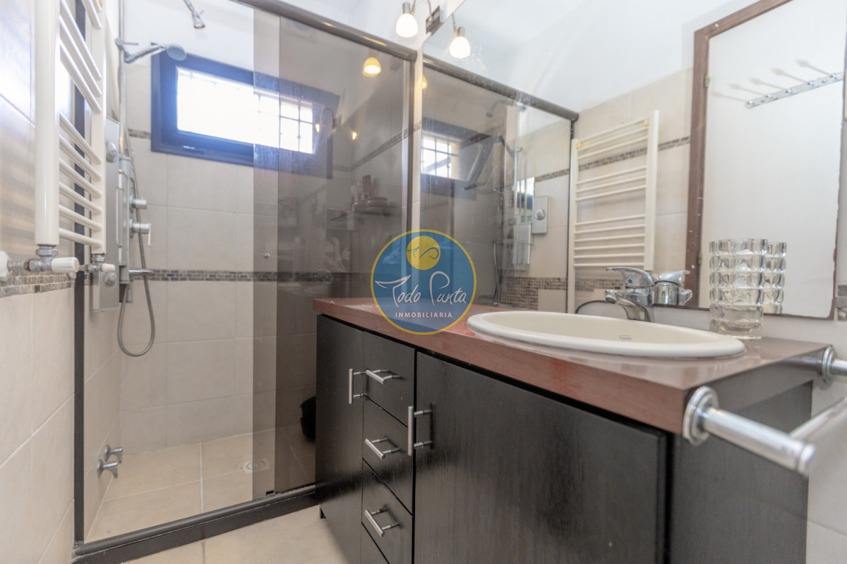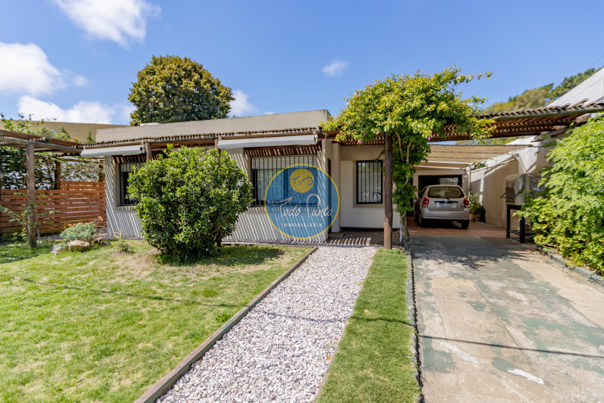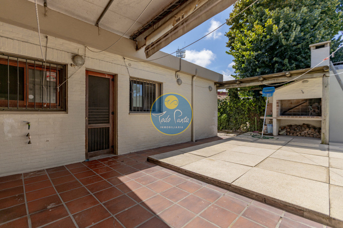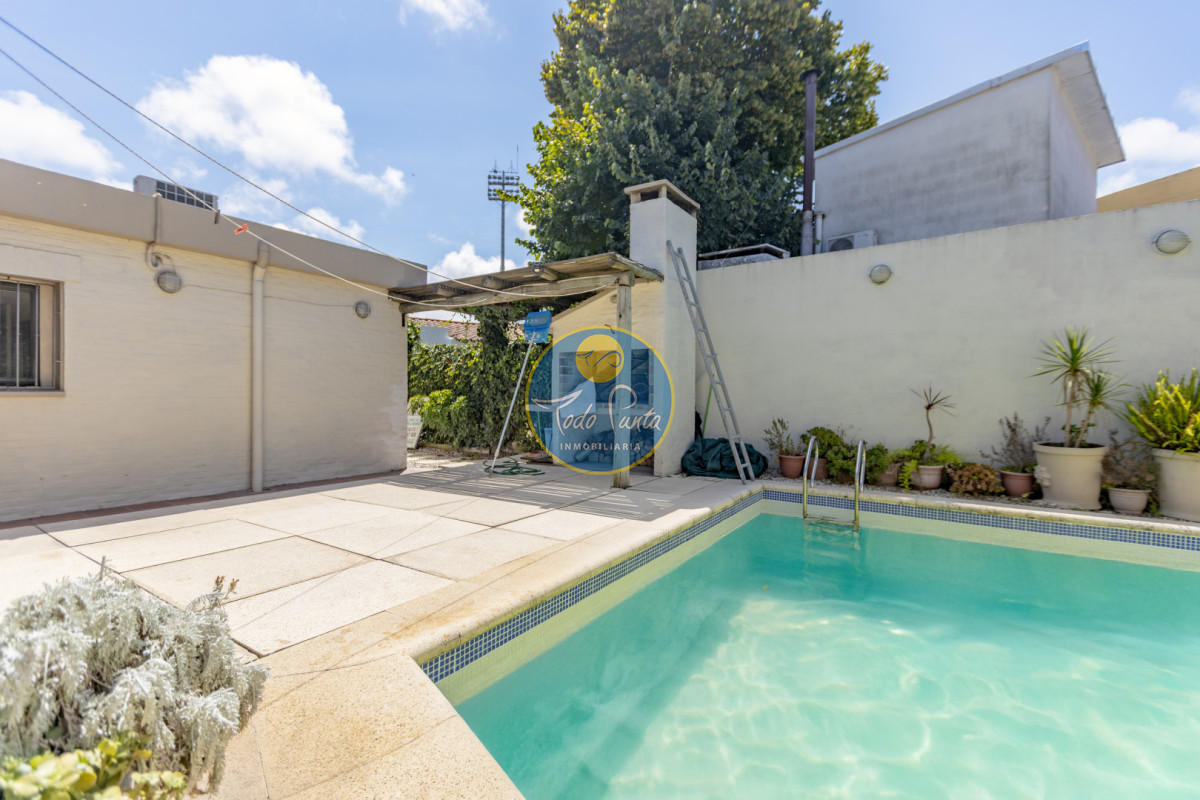 Parrillero cerrado integrado a la cocina junto a una cómoda sala de estar, patio con piscina y parrillero descubierto. Cocheras para 4 vehículos.