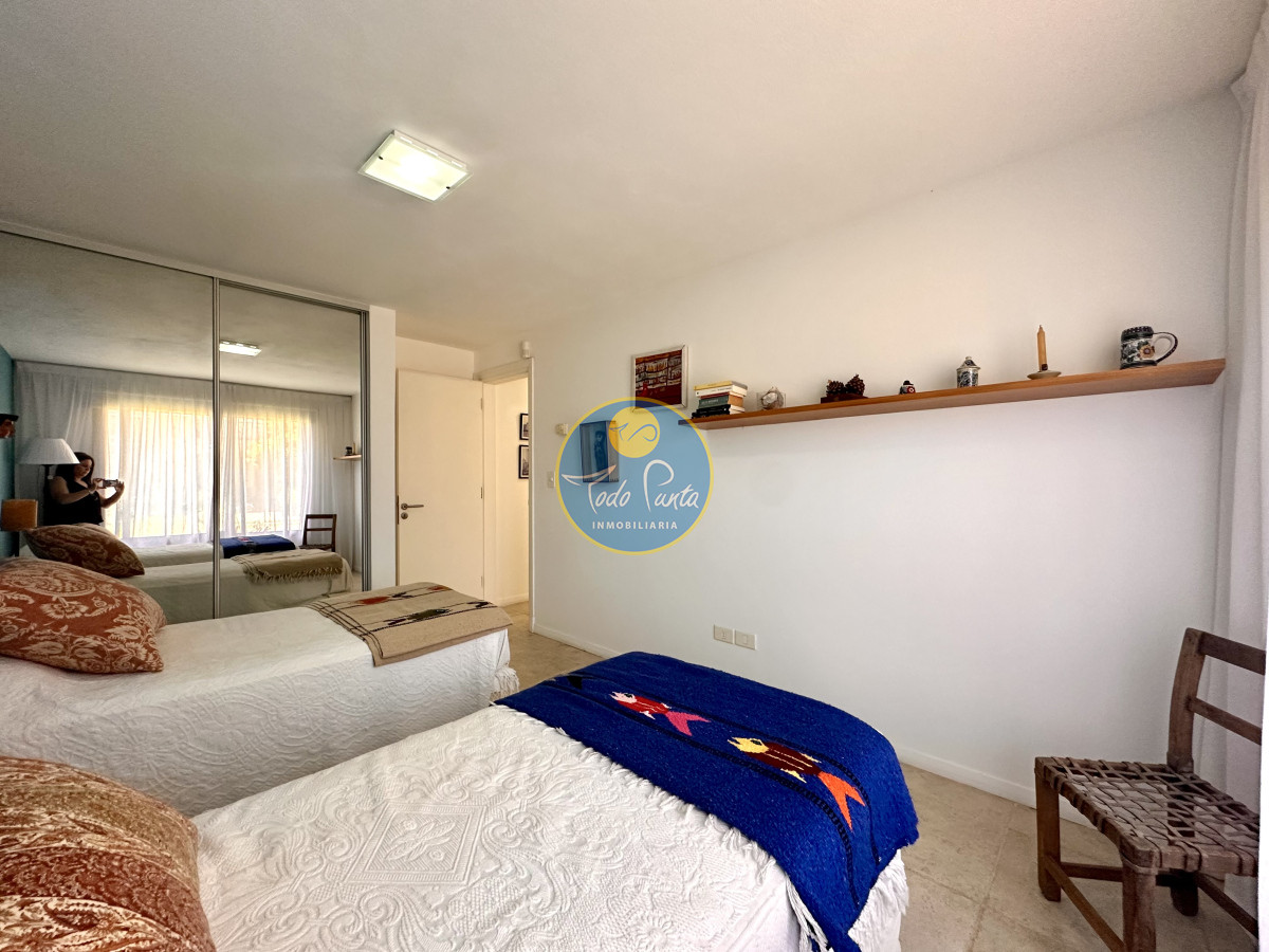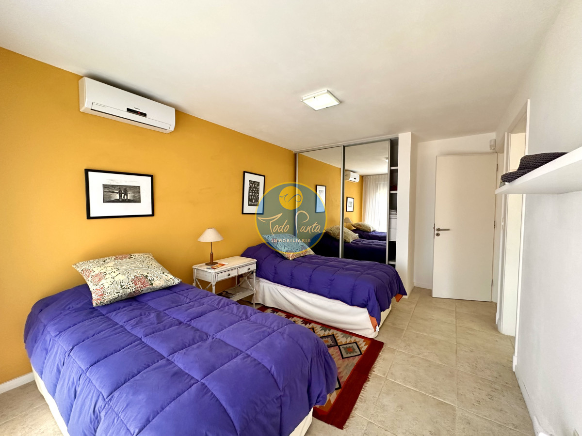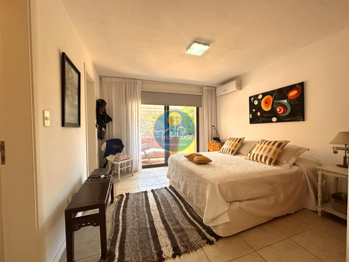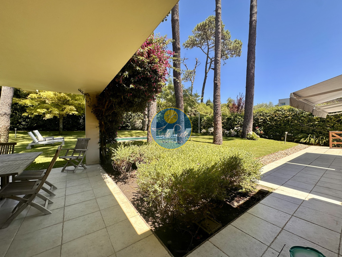 Tres dormitorios, dos baños, el principal en suite con vestidor , Sauna seco y balcón con vista al jardín .