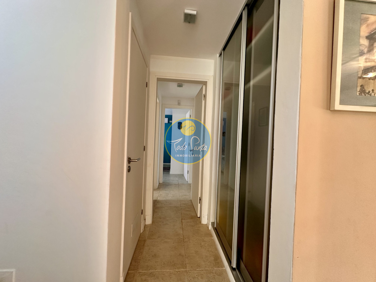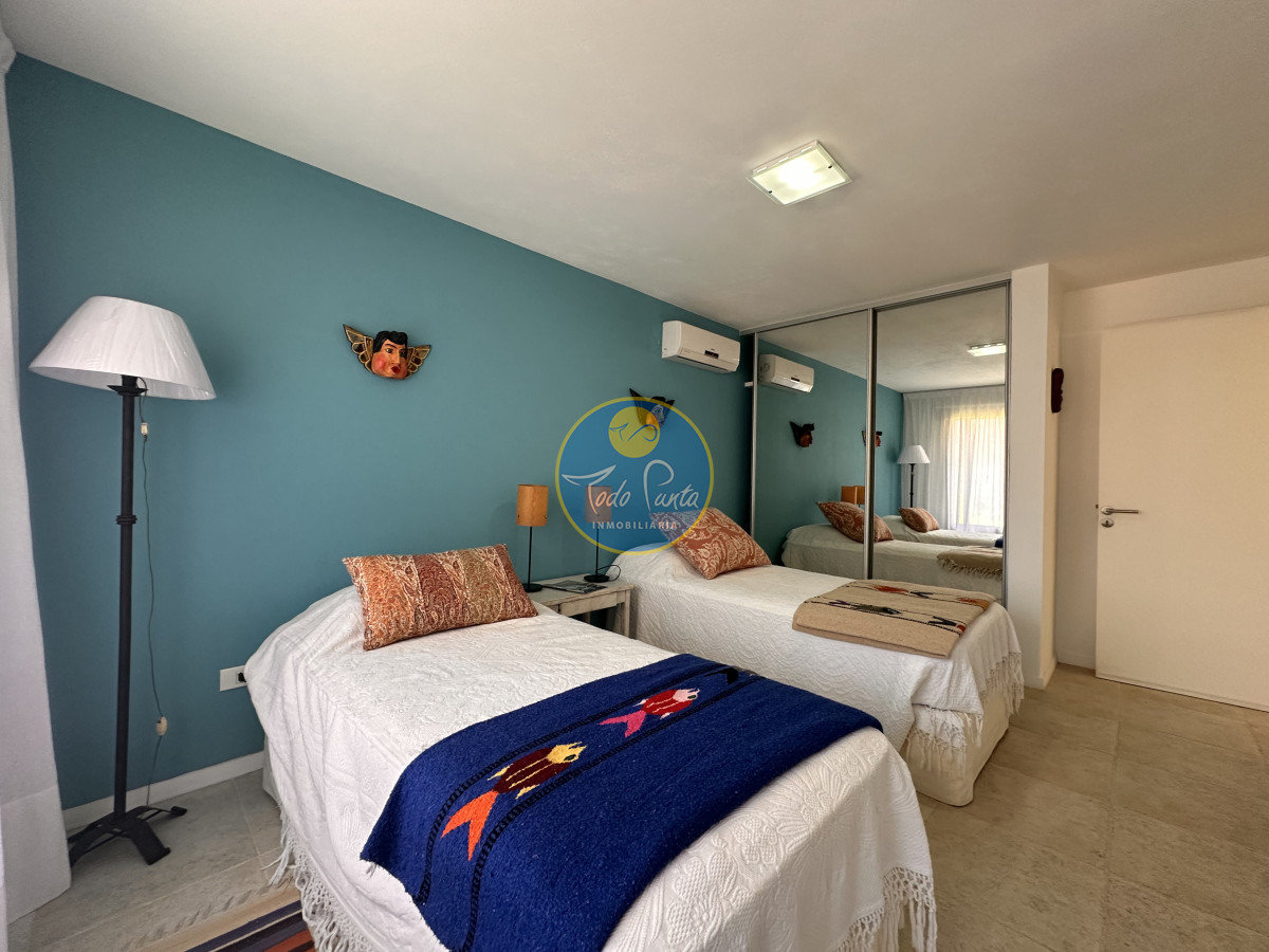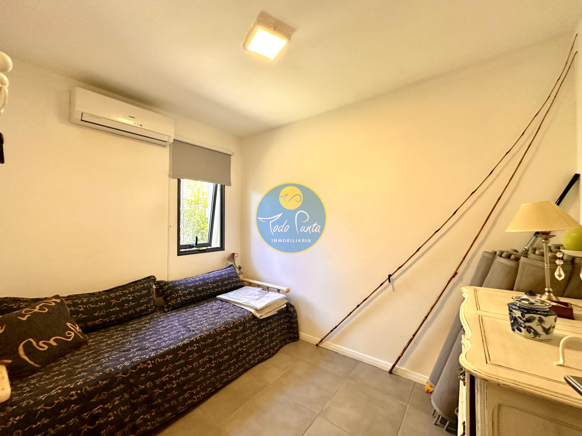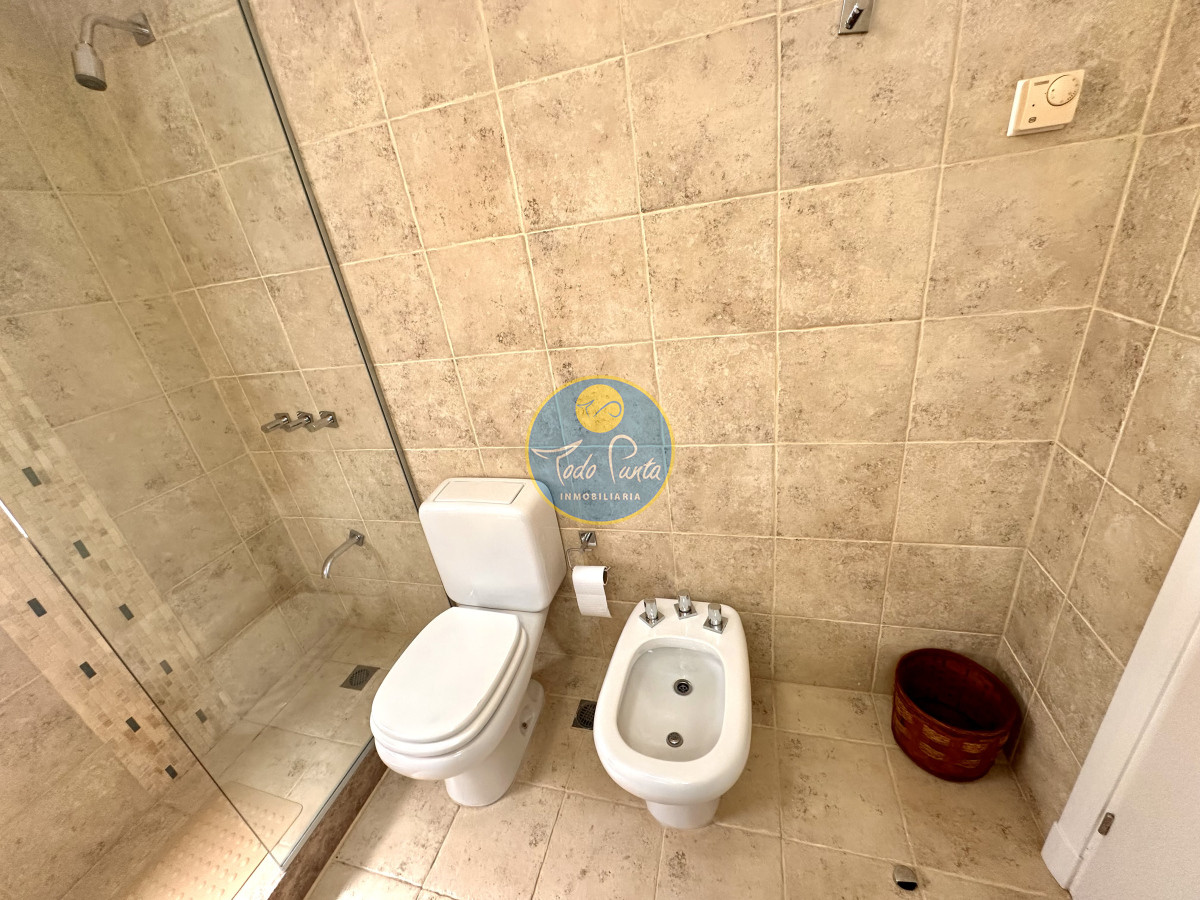 Tres dormitorios, dos baños, el principal en suite con vestidor , Sauna seco y balcón con vista al jardín .